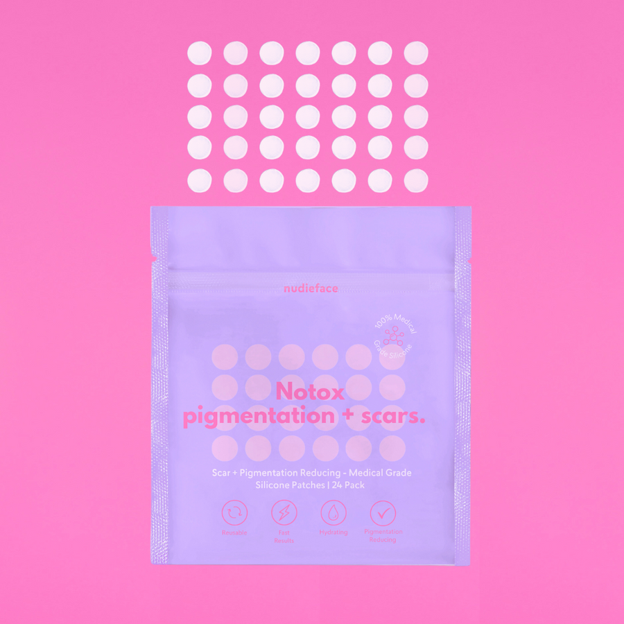 Notox Pigmentation + Scar Patches are reusable, medical grade silicone patches specifically designed to reduce the chance of scarring from breakouts, reduce pigmentation and speed up would healing.