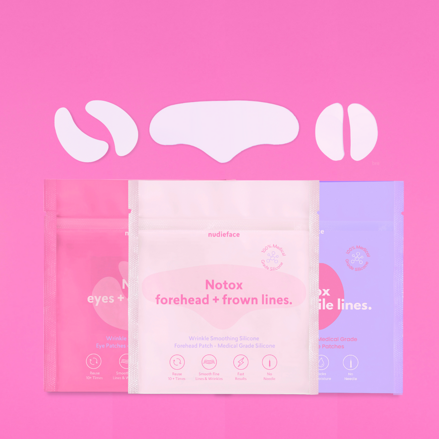 Notox Forehead + Eyes + Smile Lines Silicone Wrinkle Patches are reusable, medical grade silicone patches specifically designed to smooth fine lines & wrinkles.
